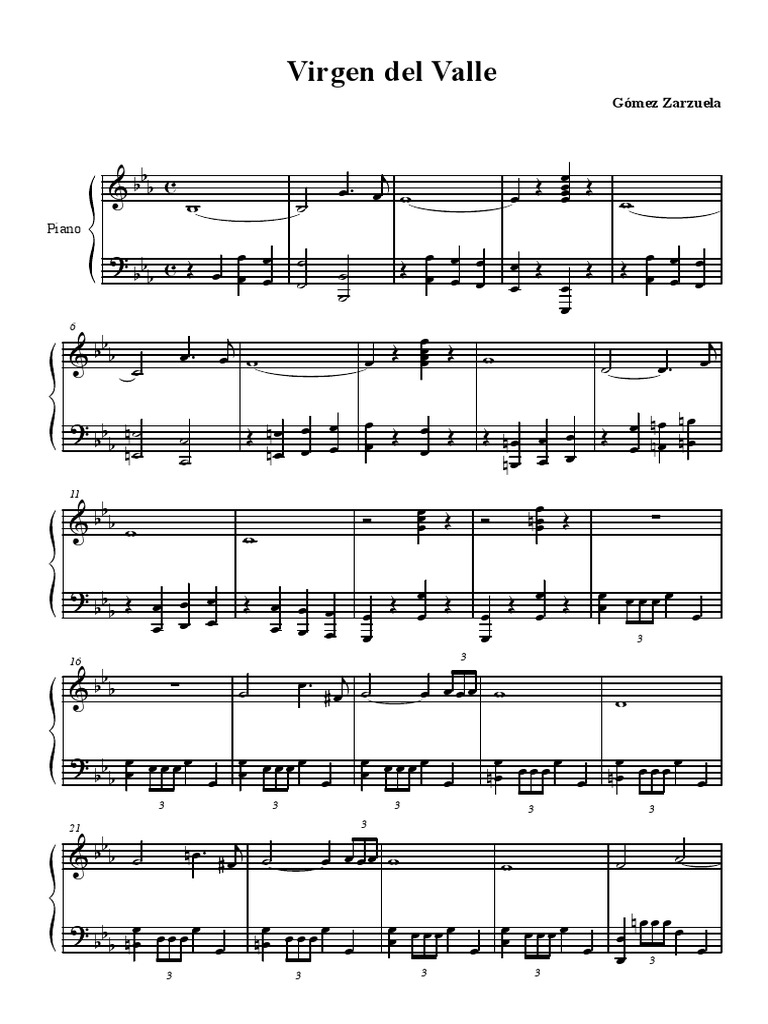 Virgen Del Valle Vicente Gomez Zarzuela Perez Partitura Youtube