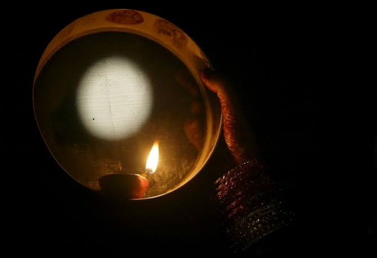 Moonrise on Karwa Chauth Day - 0843 PM. Women will fast from 610 am in the morning till the moonrise. Fasting women burst into smiles after seeing the moon.