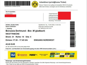 20 21 Dortmund Bvb Borussia Monchengladbach Eintrittskarte Ticket Print Home Ebay